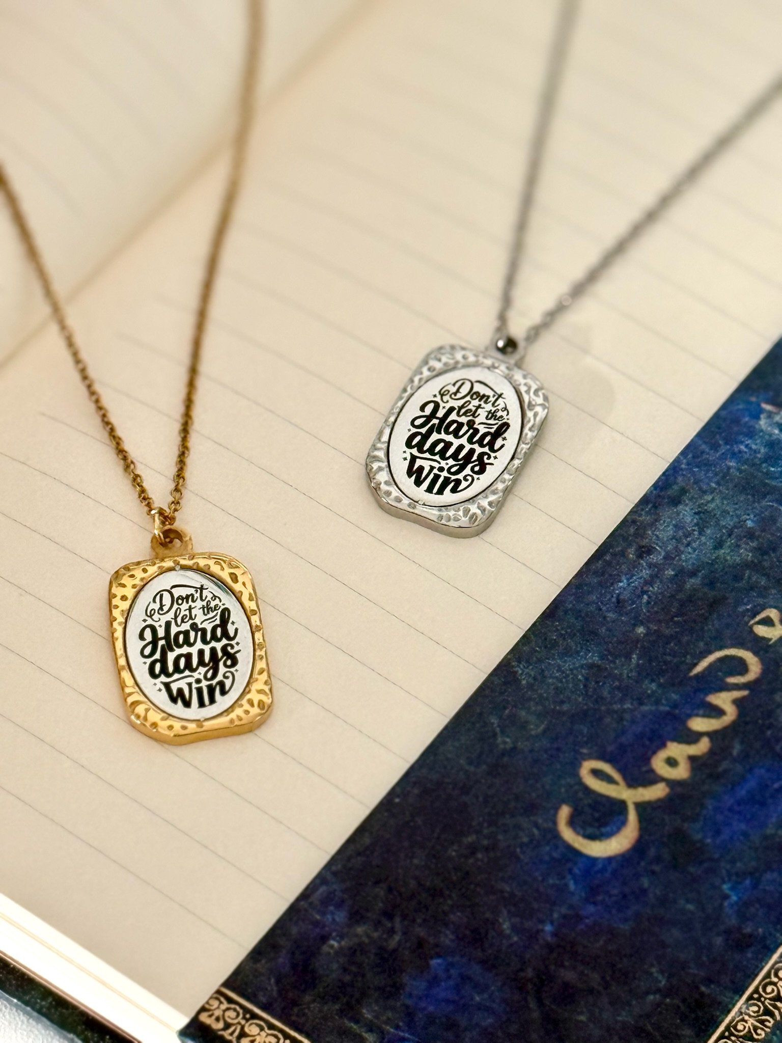 This necklace highlights one of the most powerful quotes from the ACOTAR saga: “Don’t let the hard days win”. The text is engraved on a mirror-finish surface that reflects the light, adding elegance and timeless beauty. A strong and meaningful piece, perfect for fantasy lovers and for anyone wishing to carry a reminder of courage close to their heart.